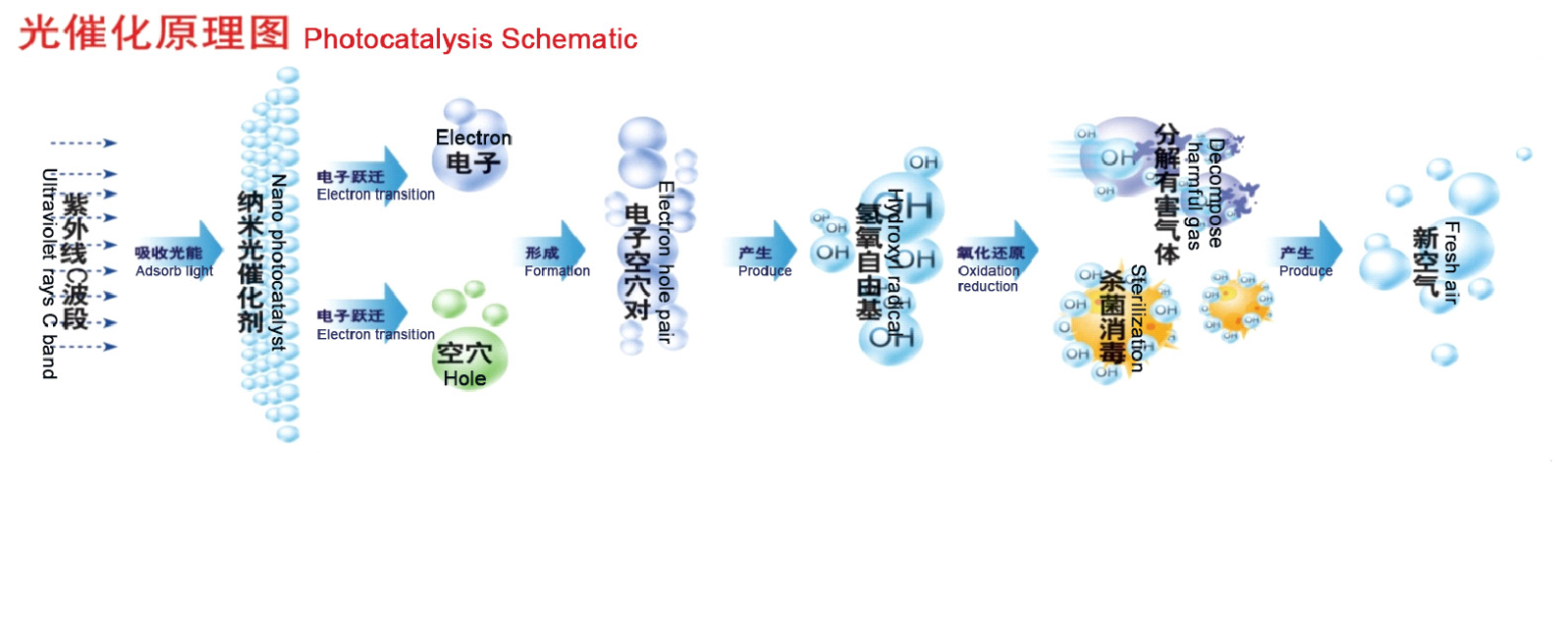 技术先进性:采用国际先进的光触媒技术,可以高效的降解苯、甲苯、二甲苯、苯乙烯、甲醛、醋酸、氨等挥发性有机物(TVOC)等污染物,分解污染物的同时,释放负离子,光触媒材料本身不会发生变化和损耗,在光的照射下不断净化污染物,持续作用时间长,且安全可靠,是新兴的绿色环保材料。