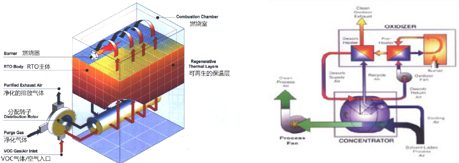 蓄热式热氧化器。蓄热式热氧化器(Regenerative Thermal Oxidizer,简称 RTO), 是在热氧化装置中加入蓄热式热交换器 , 预热VOC 废气 , 再进行氧化反应。
