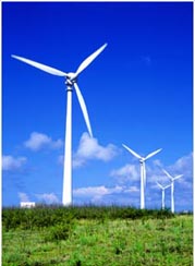 风能是最清结、无污染的可再生能源之一。据专家们的测估,全球可利用的风能资源为200亿千瓦,约是可利用水力资源的10倍。如果利用1%的风能能量,可产生世界现有发电总量8%~9%的电量。据有关部门预测,我国可利用风能资源约为16亿千瓦,其中有很好利用价值的约为2.53亿千瓦。 风力发电有横轴型风力发电机和垂直轴型风力发电机两种。风力发电装置一般由风轮、传动系统、发电机、储能设备、控制保护系统和塔架等组成。近年来,我国对风力发电也很重视,已选定在广东、海南、福建、山东、内蒙、新疆等风力资源丰富的地区大力发展风电。目前,正在制定长远的风力发电规划,国家新能源政策的重点也是大力发展和加快开发利用风力发电。