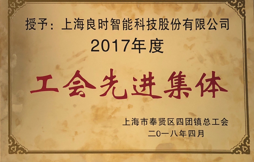 中国上海 2018年4月19日上午,我司工会主席朱媛勤应邀参加了由四团镇总工会召开的“奉贤区四团镇庆祝“五一”国际劳动节表彰大会”。 会上良时智能(股票代码:837430 厚积薄发 持续创新)荣获四团镇2017年度“工会先进集体”荣誉称号,我司技术部孙峰工程师荣获“新时代工匠”个人荣誉称号。