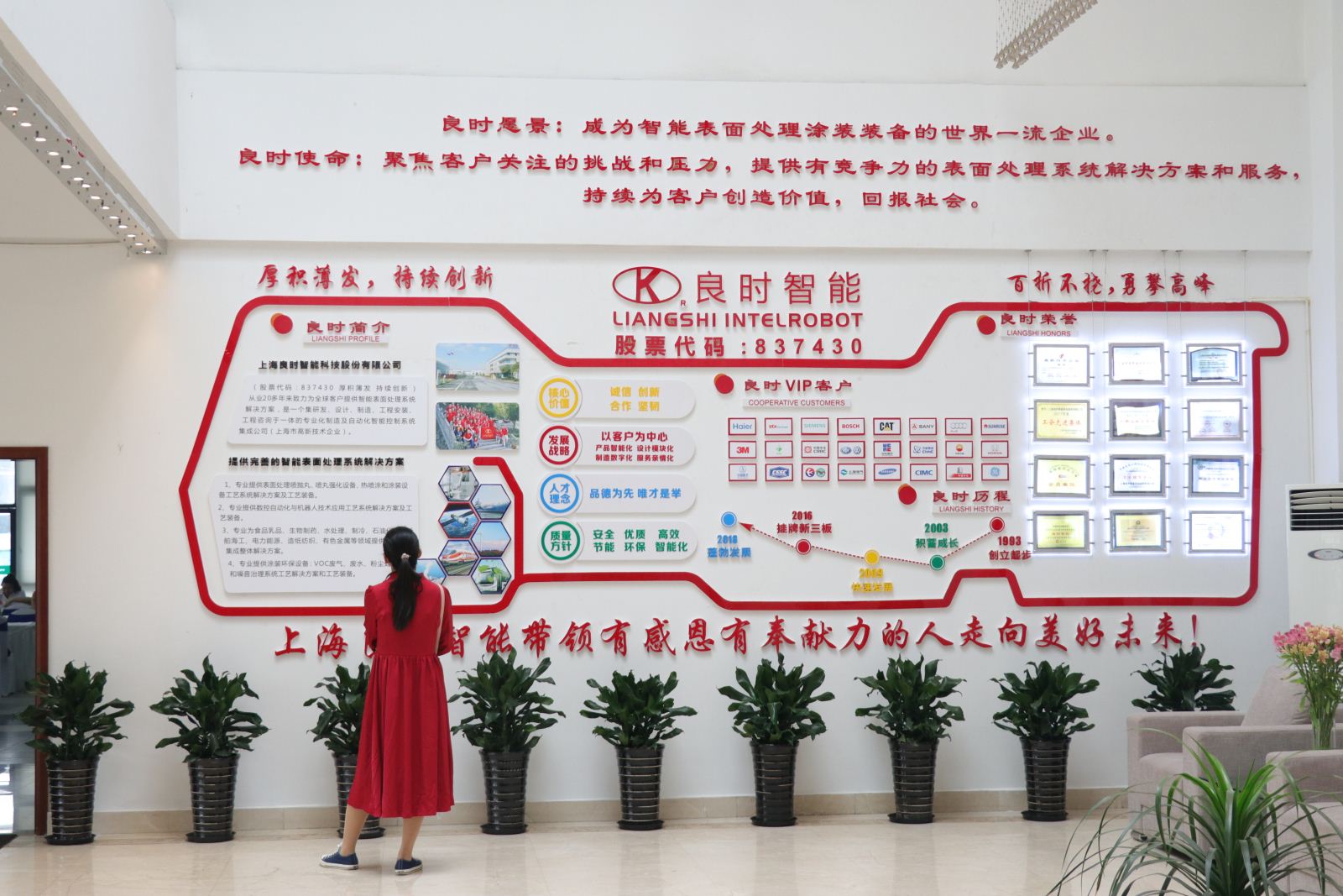 最后,让我们一起来分享良时企业文化墙,这面文化墙精准的概括了良时这25年来所坚持的信念、理念。