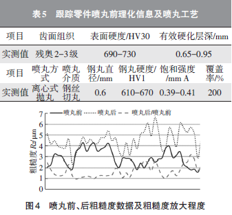 a.优化喷丸工艺参数,在保证残余压应力的前 提下,控制喷丸后齿面粗糙度放大程度。这需要大量的工艺试验,且工艺通用性不强。