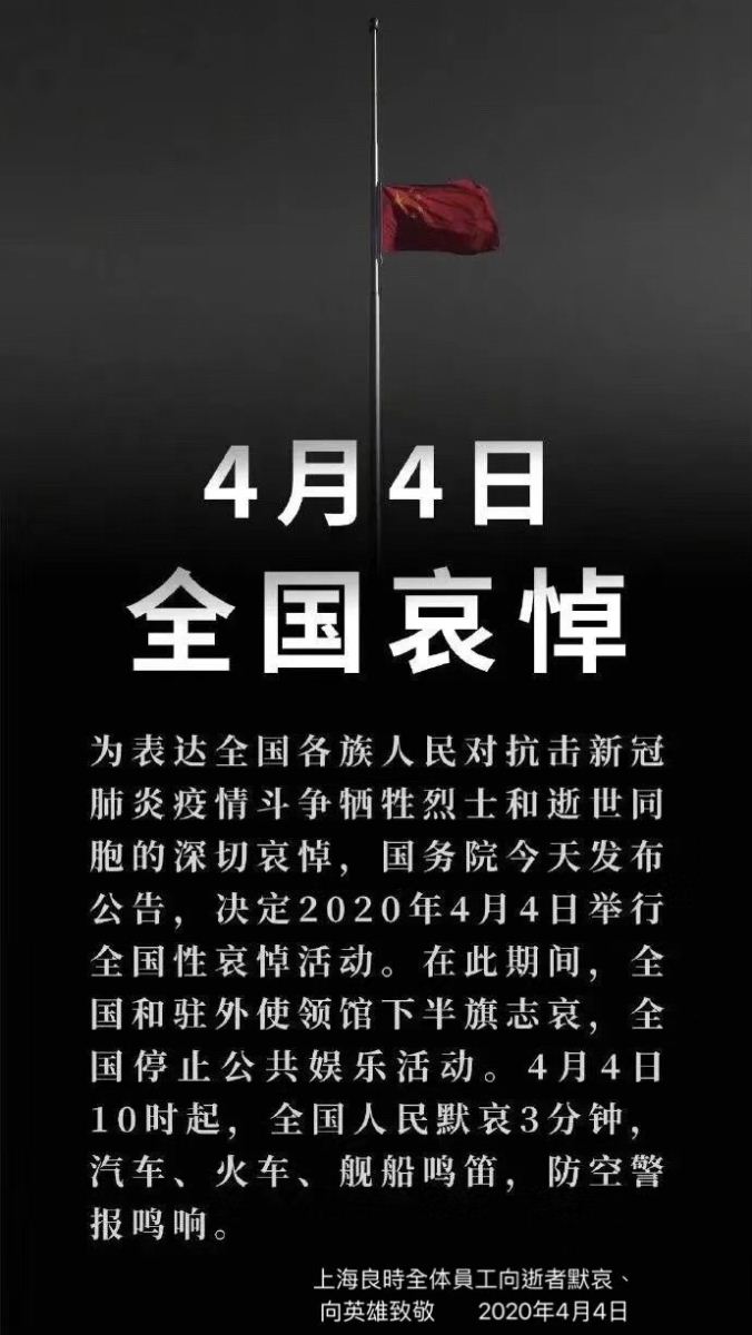 上海良时向抗击新冠肺炎疫情斗争牺牲的烈士和逝世的同胞致以深切的哀悼和崇高的敬意!