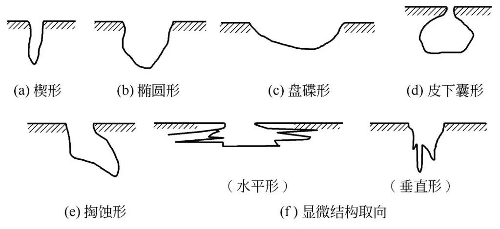 图1 点蚀孔的各种剖面形状(选自ASTM标准)