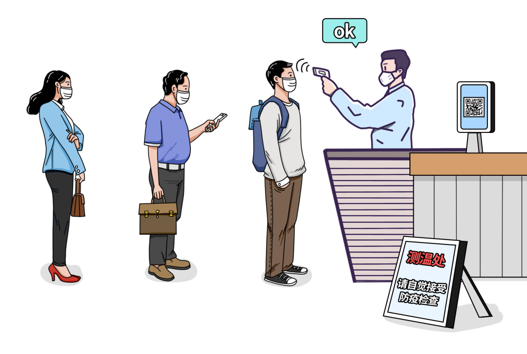 ● 加装体温监测设备,对进入办公场所的人员进行体温检测,体温正常者方可进入。
