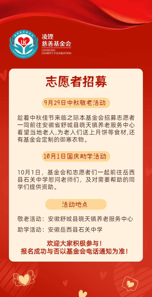 上海凌铿慈善基金会十一小长假招募志愿者,欢迎大家踊跃参与!