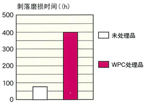 ★★ WPC处理的寿命延长效果示例 SCM 轴:5倍 SCM 齿轮:8倍以上 SCM 扭杆:8倍以上 SK泵部:件10倍 SUJ滚针:6倍以上 SUS304高压容器(防止应力腐蚀断裂):没有发生